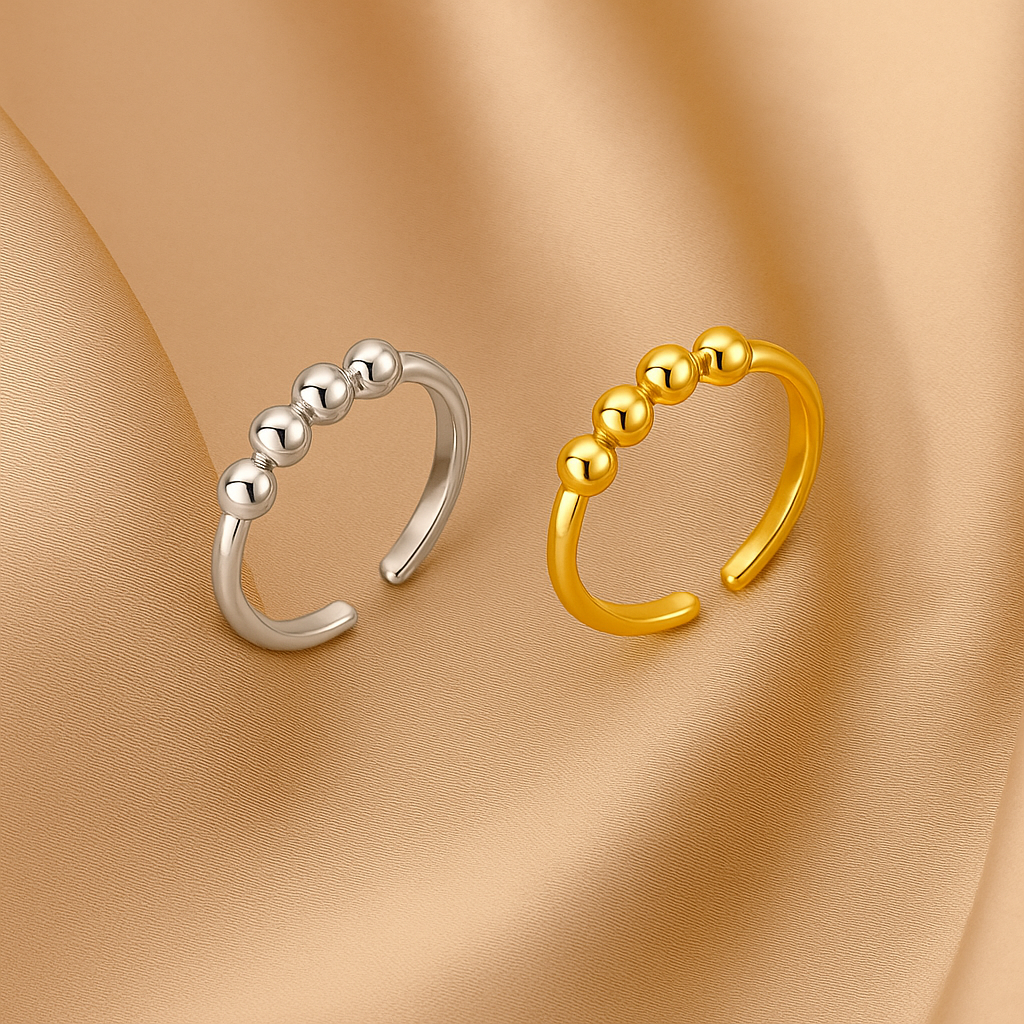 Crafted from durable stainless steel with a comfortable adjustable fit, each ring is designed to last while still feeling light and effortless to wear. Whether you’re at work, commuting, or winding down at night, a simple spin of the band helps you stay grounded and focused without anyone noticing.