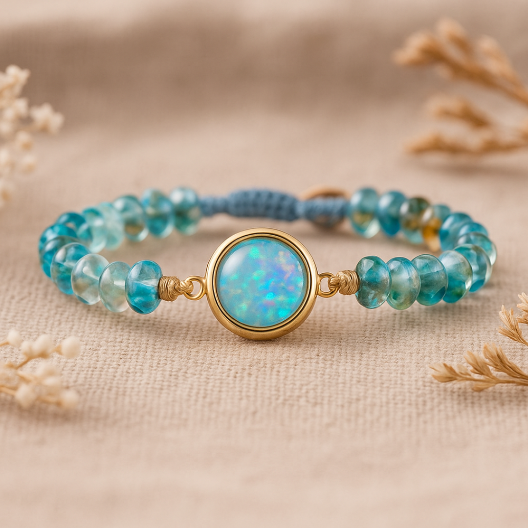 This bracelet supports emotional liberation and self-discovery. Opal intensifies positive emotions, encourages self-acceptance and helps release emotional tension, such as anger or inhibition, that blocks authentic expression.