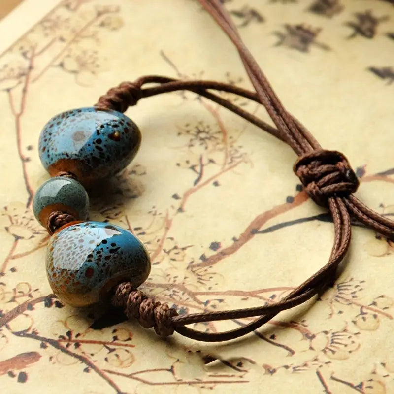 The Heart of Earth Ceramic Bracelet is handcrafted with love, featuring unique ceramic heart beads in earthy blue and brown tones. These symbolic beads represent harmony, love, and connection, carrying the grounding essence of the Earth.