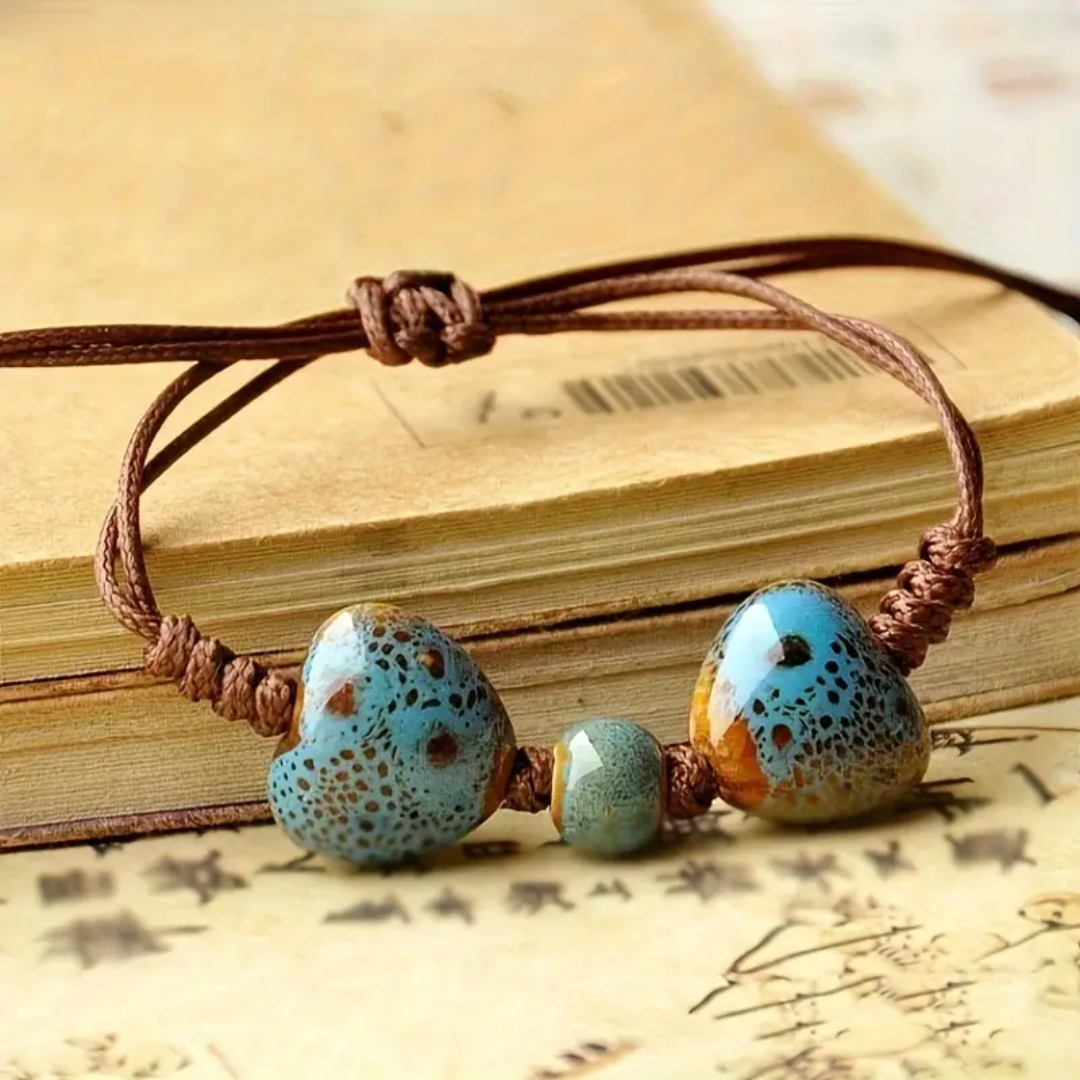 - Ceramic heart beads: symbol of harmony, connection, and love.