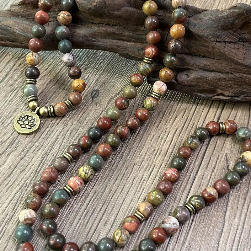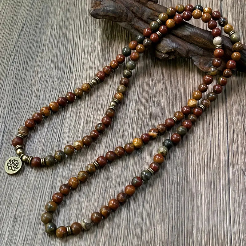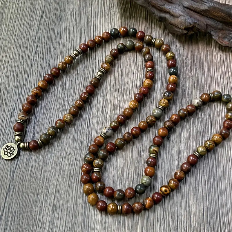 Polychrome Jasper is known as a stone of vitality and stability, offering grounding energy and emotional resilience. The lotus symbol represents spiritual awakening, purity, and the strength to rise above challenges—just as the lotus blooms from the mud into beauty.